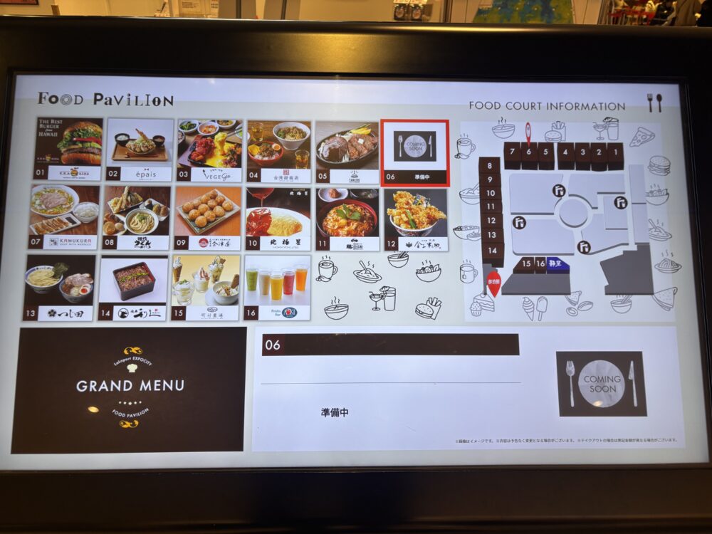 フードコート入り口のMAPで見ると「6番」の場所のようです。