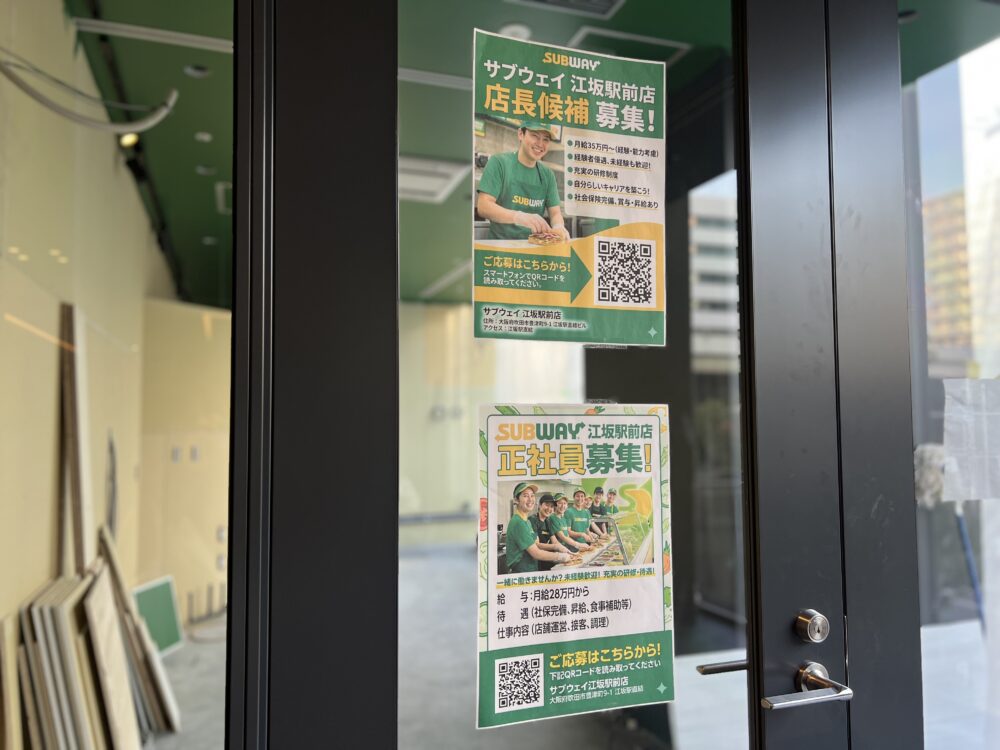 サブウェイ公式WEBサイトの正社員求人情報によると、「サブウェイ 江坂店」のオープン日は2月24日となるそうです!!