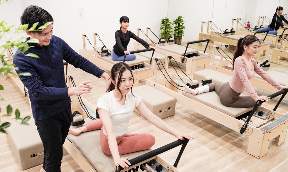 2階のピラティススタジオは女性専用で、ピラティスレッスンは1レッスン最大4名の少人数制だそうです。
