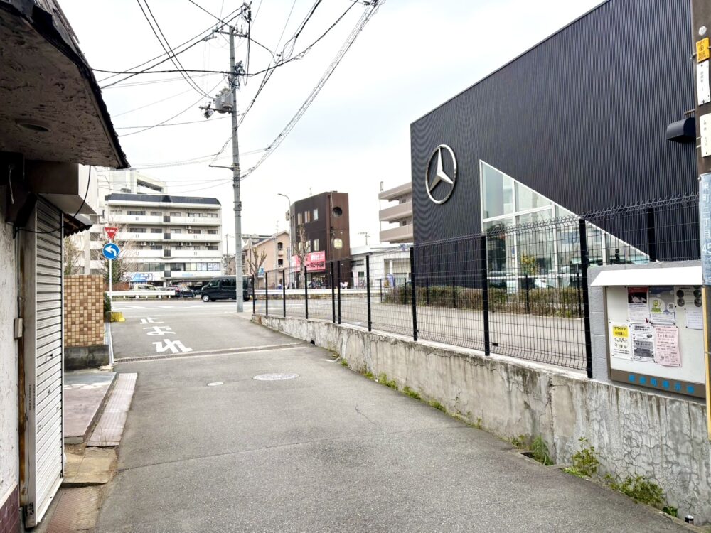 阪急吹田駅すぐにある、メイシアターと市役所。その近くにあるメルセデツベンツ北大阪店のスグ横にある、細い道に入ります。