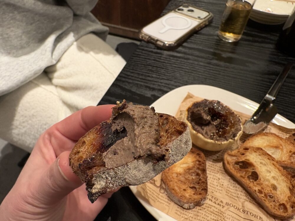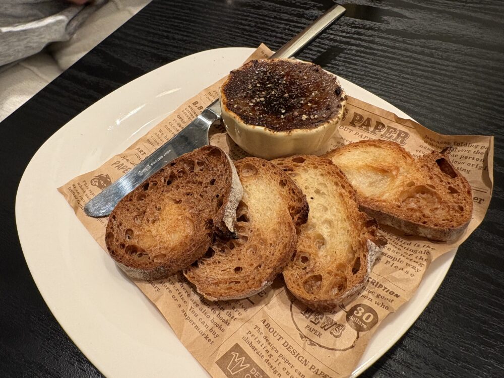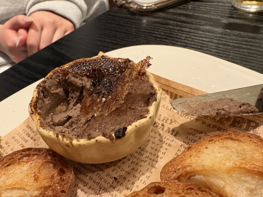レバーペーストの表面がクレームブリュレのカラメルみたいにカリッてなっいて、最高!!