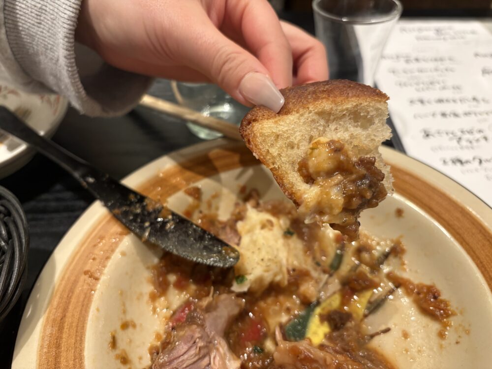 しっとりしたパンもめっちゃおいしいし、お皿についたソースもキレイにいただきました。