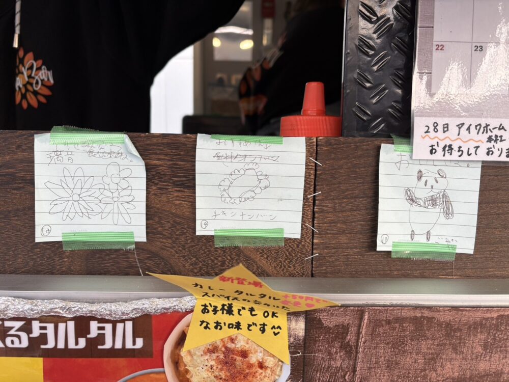 お店の一角にお客さんのお子さんが描いたという絵を飾っておられました☆