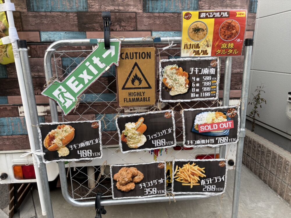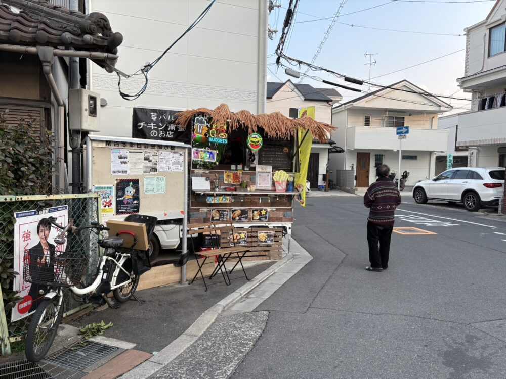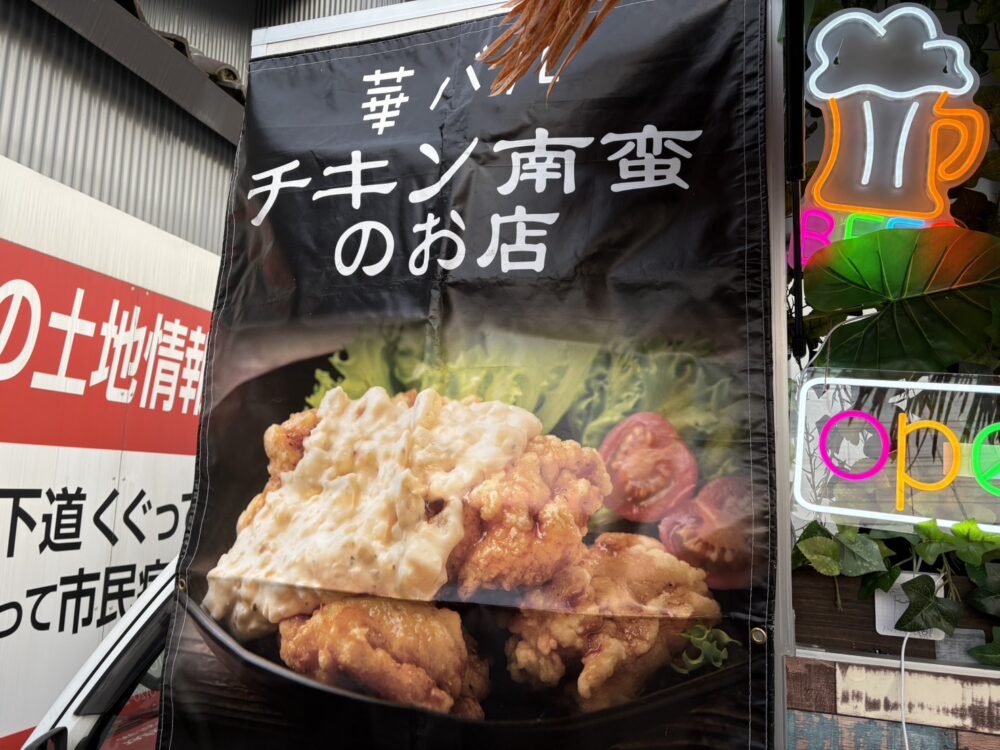 ‟チキン南蛮”の幟(のぼり)が見えますね!辺り一帯がめっちゃ揚げ物のええ匂い漂ってます。