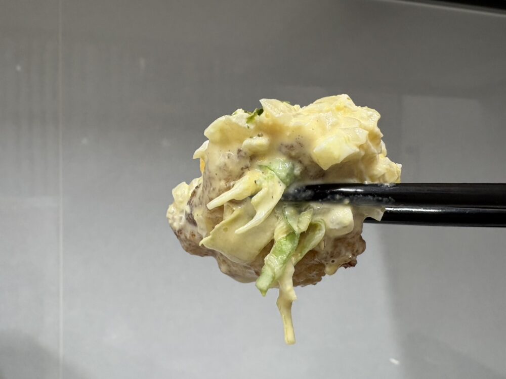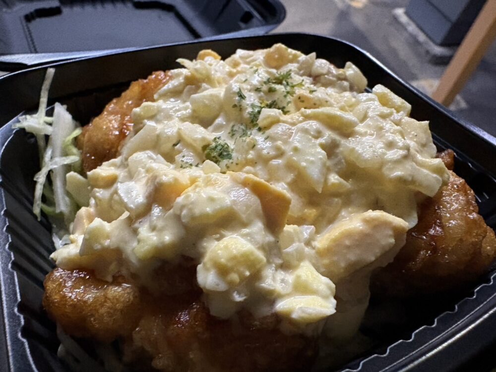さっそくいただくと、めっちゃくちゃおいしい~~~!胸肉使用とのことですが、チキンがやわらかくてプリップリ。また、旨味あふれる甘酢に、この絶品タルタルソースがもうバツグンに合う……!!