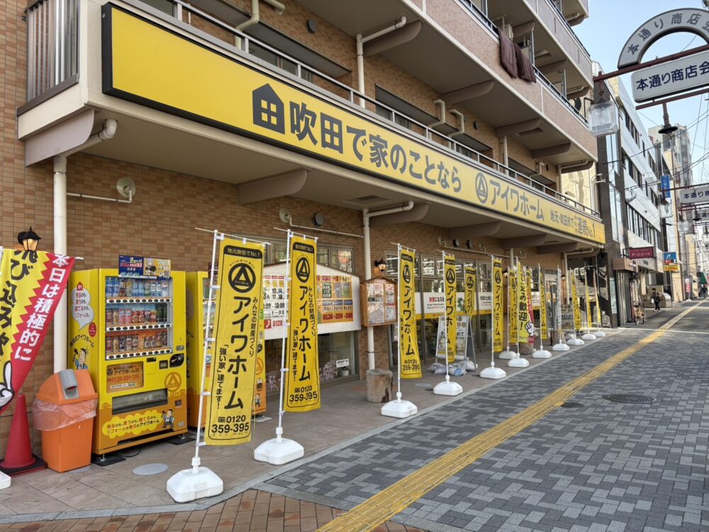 場所はこちら。JR吹田駅から徒歩約7分、黄色い看板が目印です。