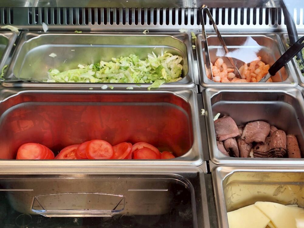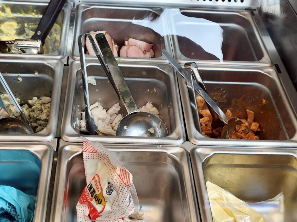 サンドイッチのソースやパンに挟むための具がたくさん並んでいます。