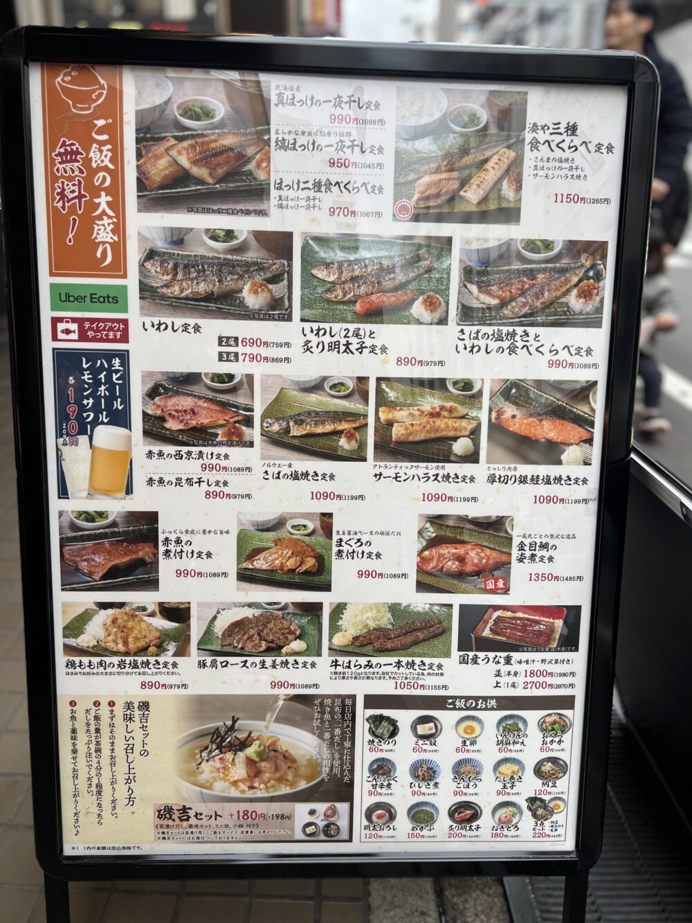ちなみに、表看板に載っていたのはB定食(さんまの塩焼き、真ほっけの一夜干し、サーモンハラス焼きのセット)で、A定食はさばの塩焼き、真ほっけ一夜干し、サーモンハラス焼きのセットだそうです。