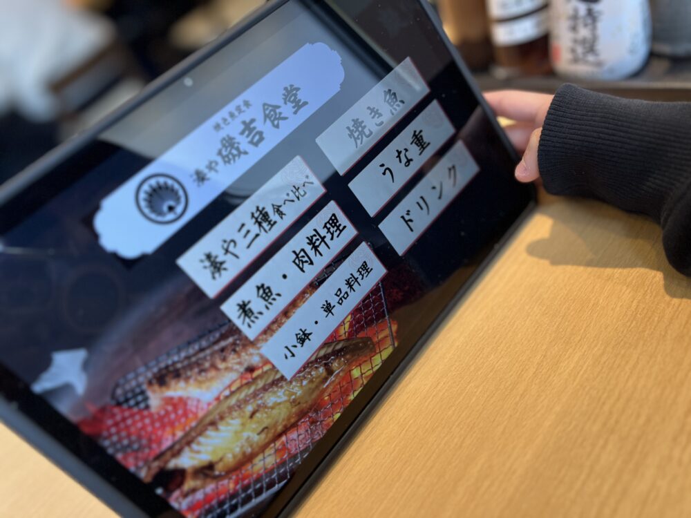 注文は卓上のタブレットから。