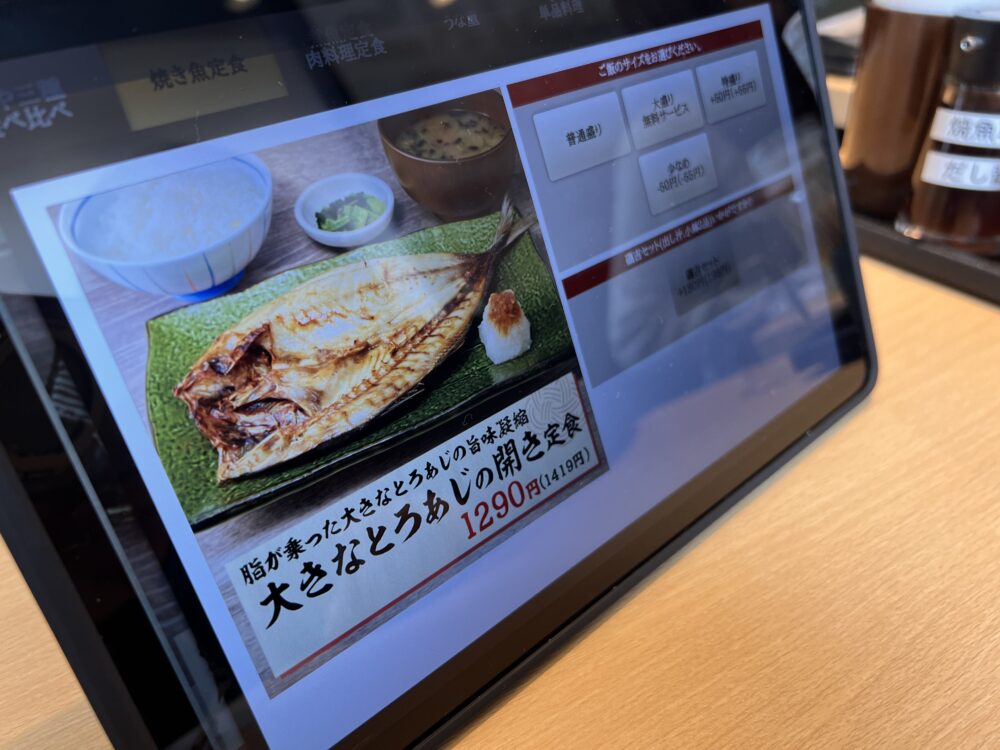 娘は「大きなとろあじの開き定食(税込1419円)」をチョイス。