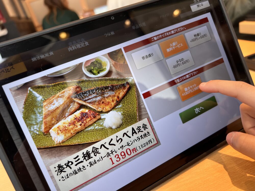 そして「磯吉セット(+税込198円)」をトライしないワケにはいかないので、もちろんこちらも選択!