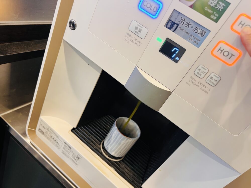 緑茶(冷・温)かお水(またはお湯)は、セルフサービスでいただけます。