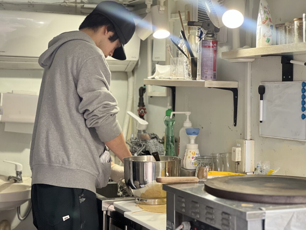 「米粉のクレープ」と書かれた看板は、なんだか和風な雰囲気。