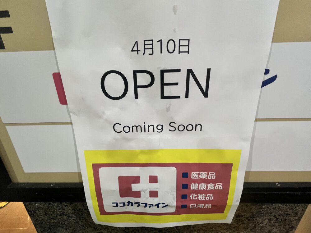 2026年4月10日、北千里駅からすぐの場所に「ココカラファイン」がオープンするようです!