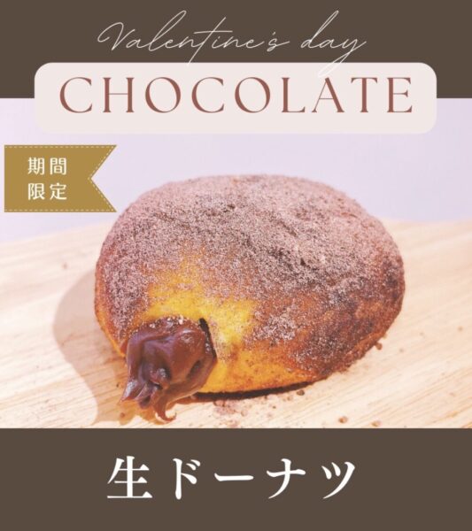 ここぺり(生ドーナツ、ケータリング@岸部南)ではバレンタインシーズン期間限定の商品、自家製チョコレートの生ドーナツが登場⭐︎