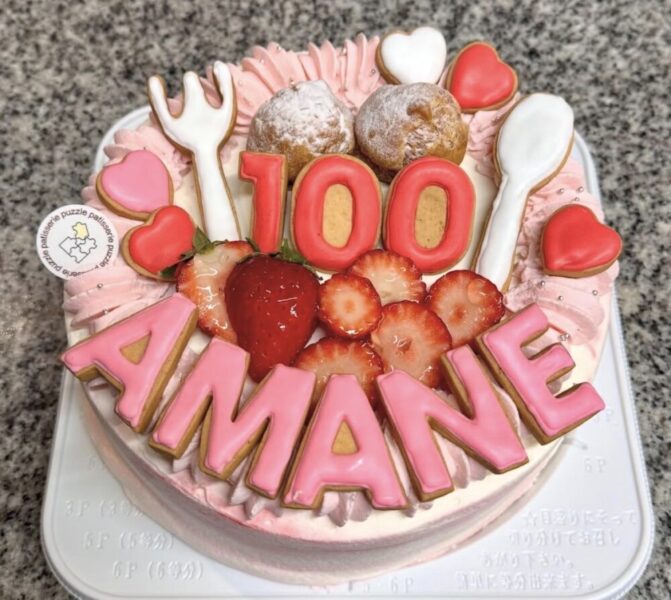 オーダーケーキがお願いできちゃいます♡こちらは100日のケーキで女の子っぽくしてほしいとオーダーしていただいたそう♡