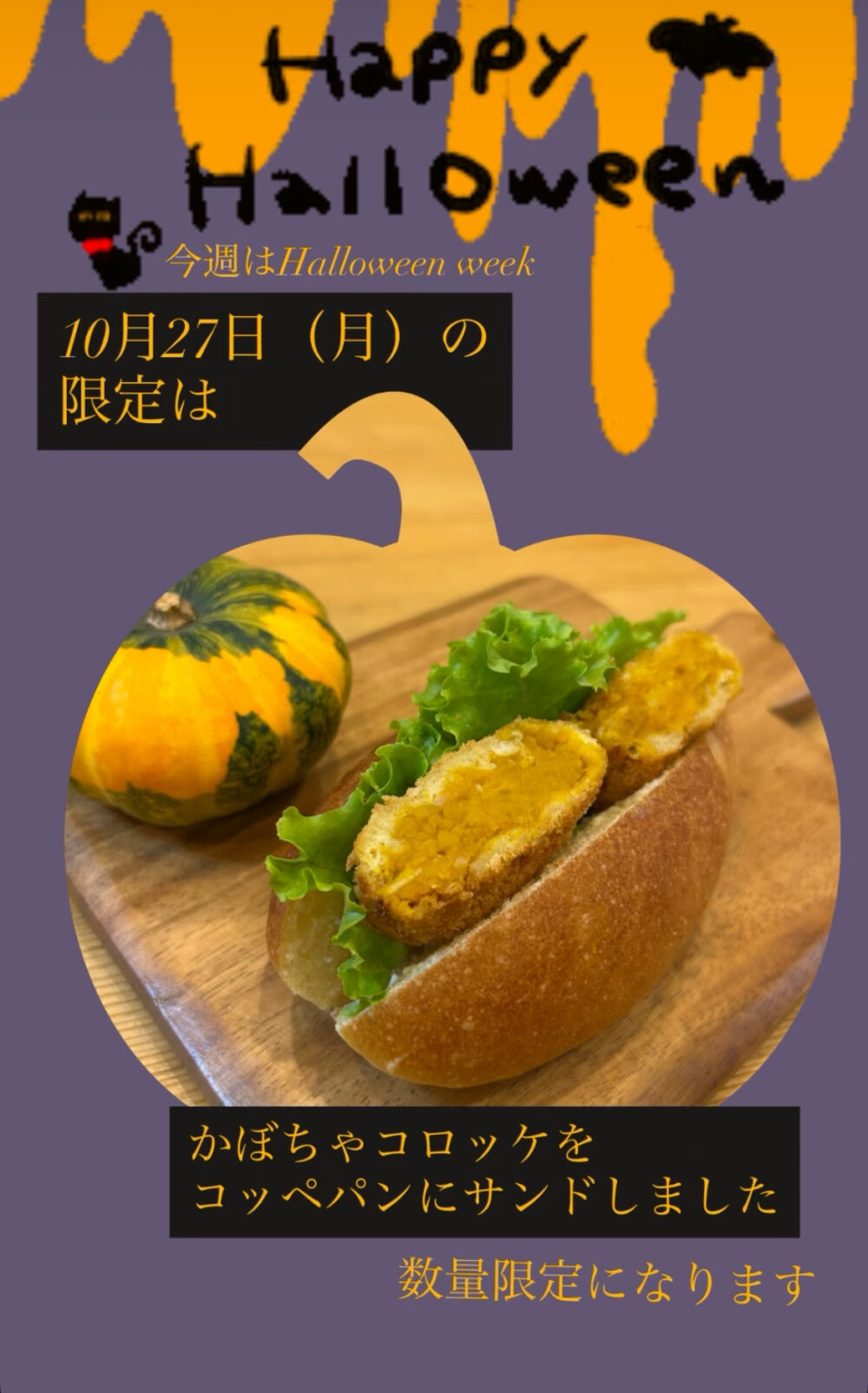 【本日の限定!】かぼちゃコロッケをさんどしちゃいました♡(くまパン@南金田)