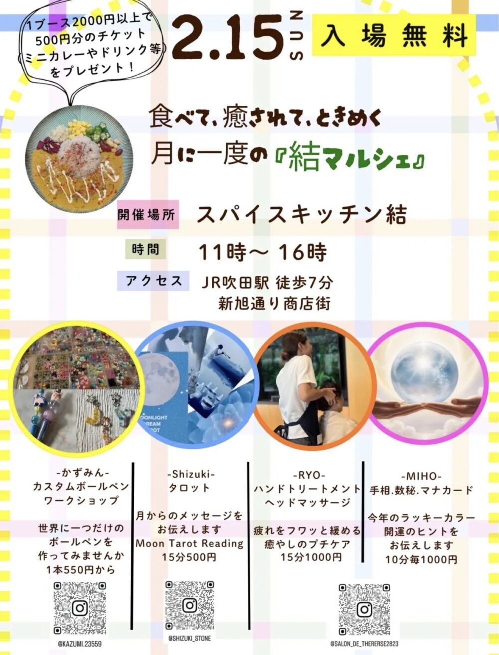 【イベント情報!】2/15(日)結マルシェ開催!(スパイスキッチン結@JR吹田駅)
