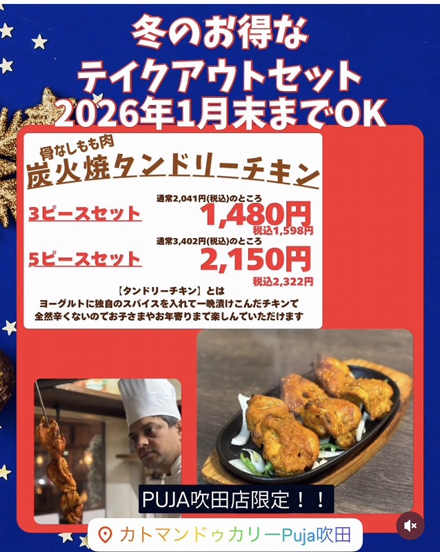 【本場の味をご自宅で♡】冬のお得なテイクアウトセット(PUJA吹田@山田南)