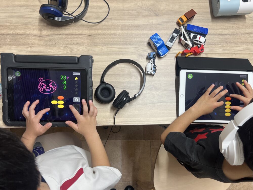 オンラインクラスもありますが、教室では子どもたちがゲームで協力したり競ったりと、楽しく暗算学習に取り組んでいます。