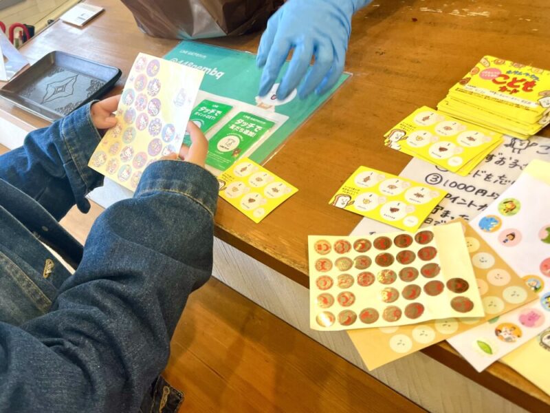 レジでカードを受け取り、好きなシールを選んで自分でペタッ☆