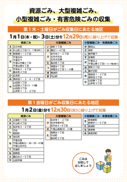 【第1木・土曜日の収集地区(1月1日木曜日・3日土曜日分)】は、12月29日(月)に収集。