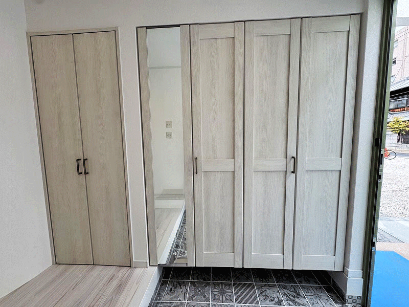 扉を開くとシューズインクローゼットと収納スペースがありました。