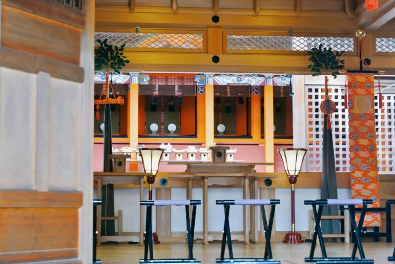 拝殿の前に着いたら、お賽銭を入れ、鈴があれば静かに鳴らします。