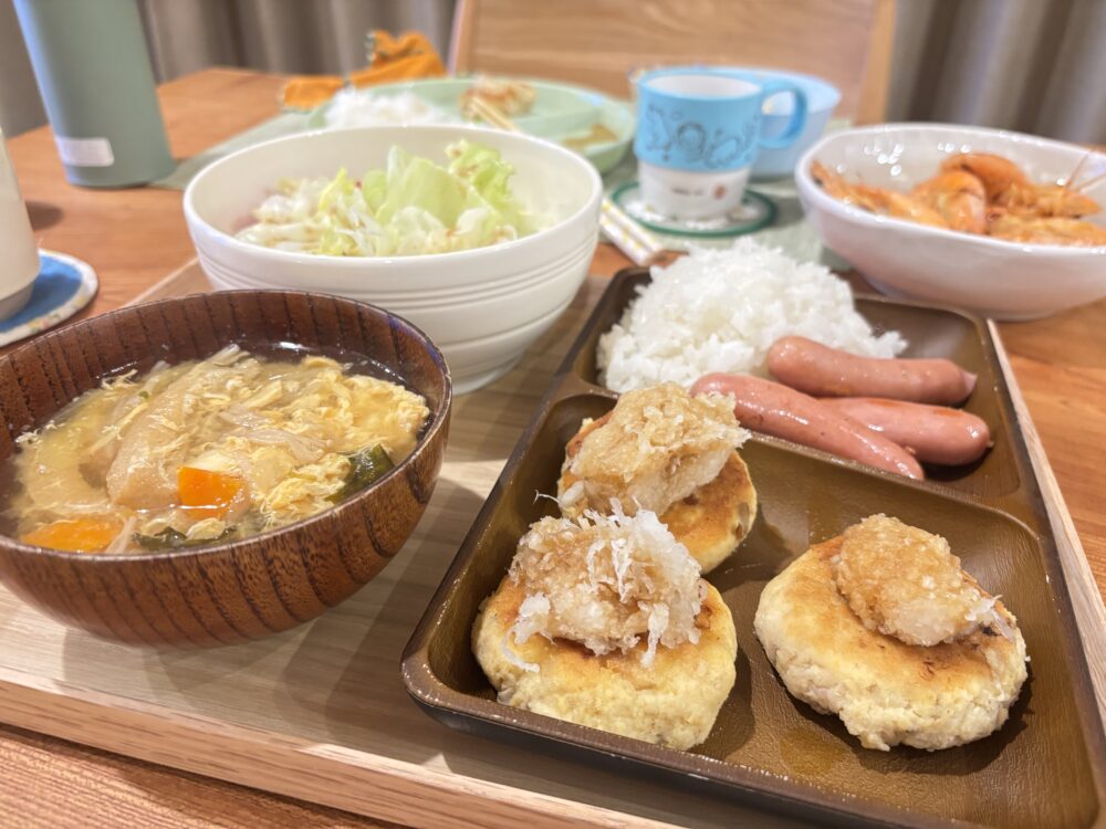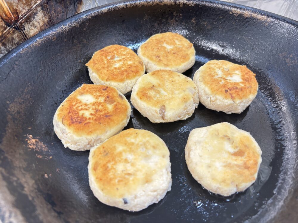 ほんまは彩りとして、タネに大葉やネギ入れたかったんですけど無くて、