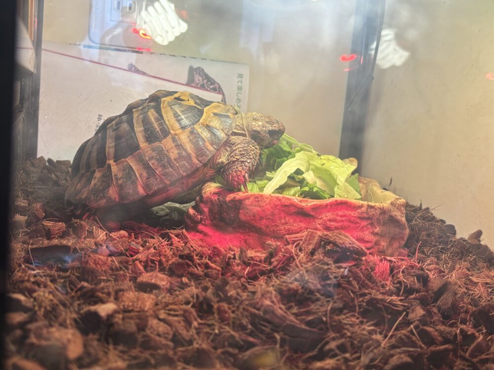 リクガメは人間と同じく、昼行性なので我々にんげんと同じサイクルで