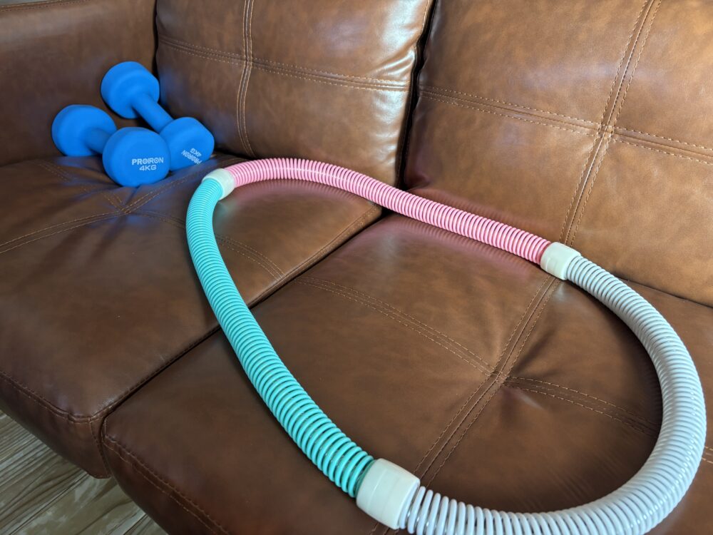 ダイエット用のフラフープ。これ、めっちゃムズイんです。