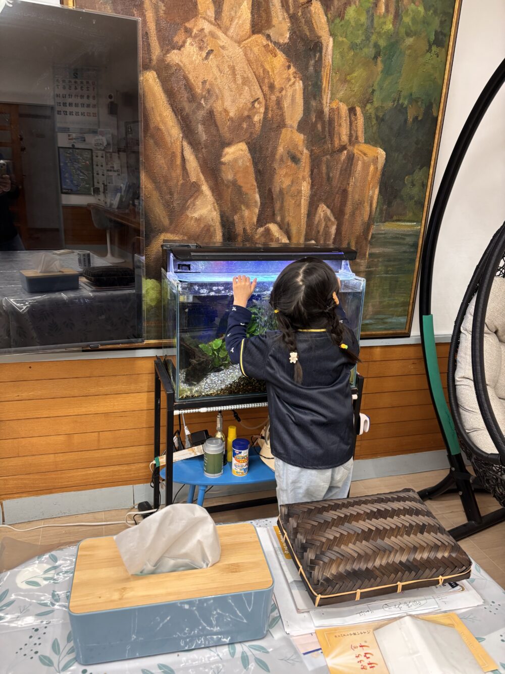 こどもちゃんに、て渡された毛布が実家み満載やったり。階段の勾配がやや急やったり。笑