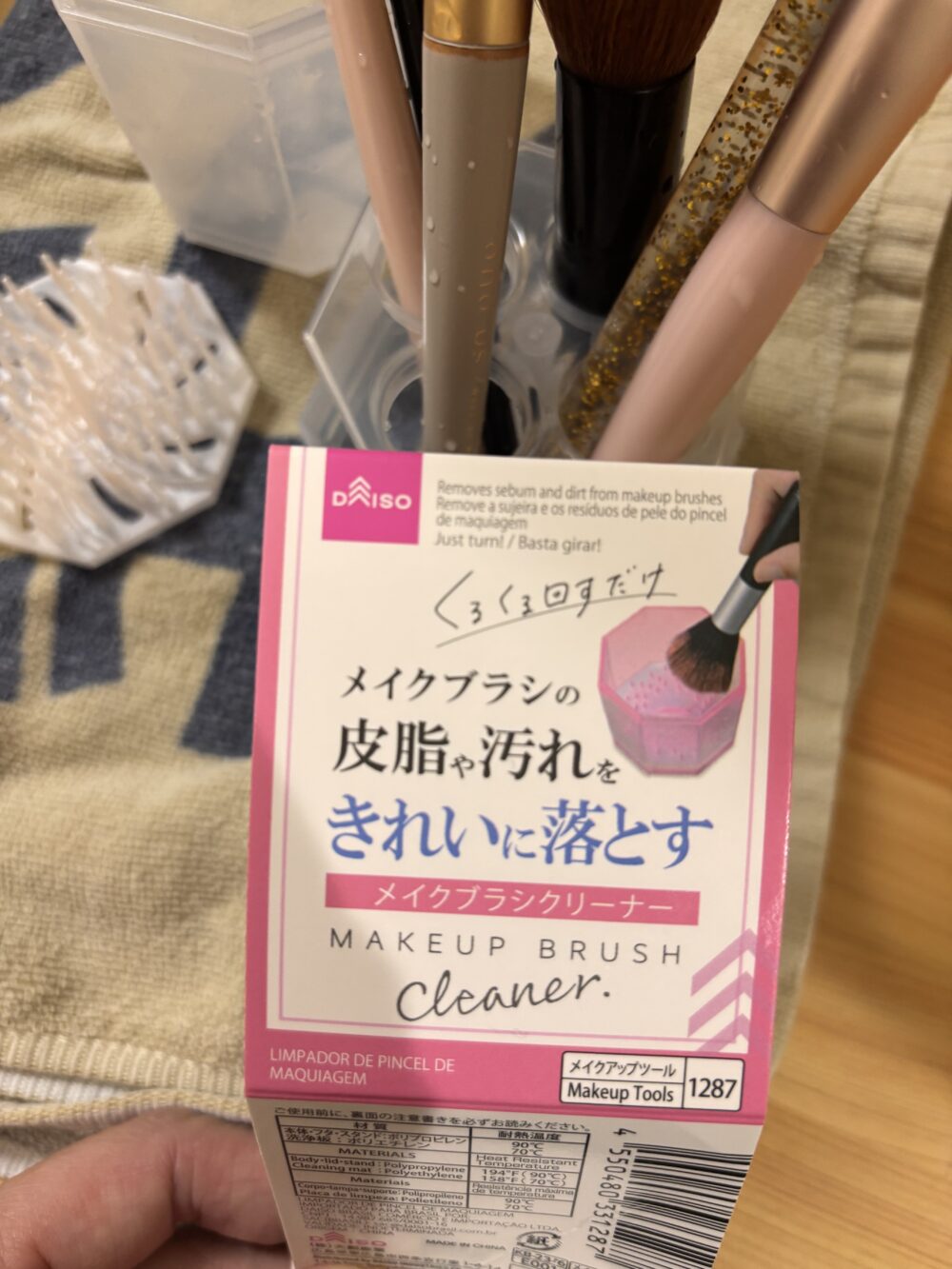 「メイクブラシ洗ってるワタシ」っていう丁寧な暮らししてる気分になって、ナイス☆自分 て思える。っていう付加価値まで込み込みで、110円でこの商品手に入るダイソーさんやっぱりすごいな!