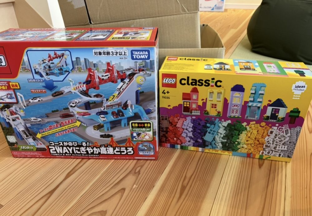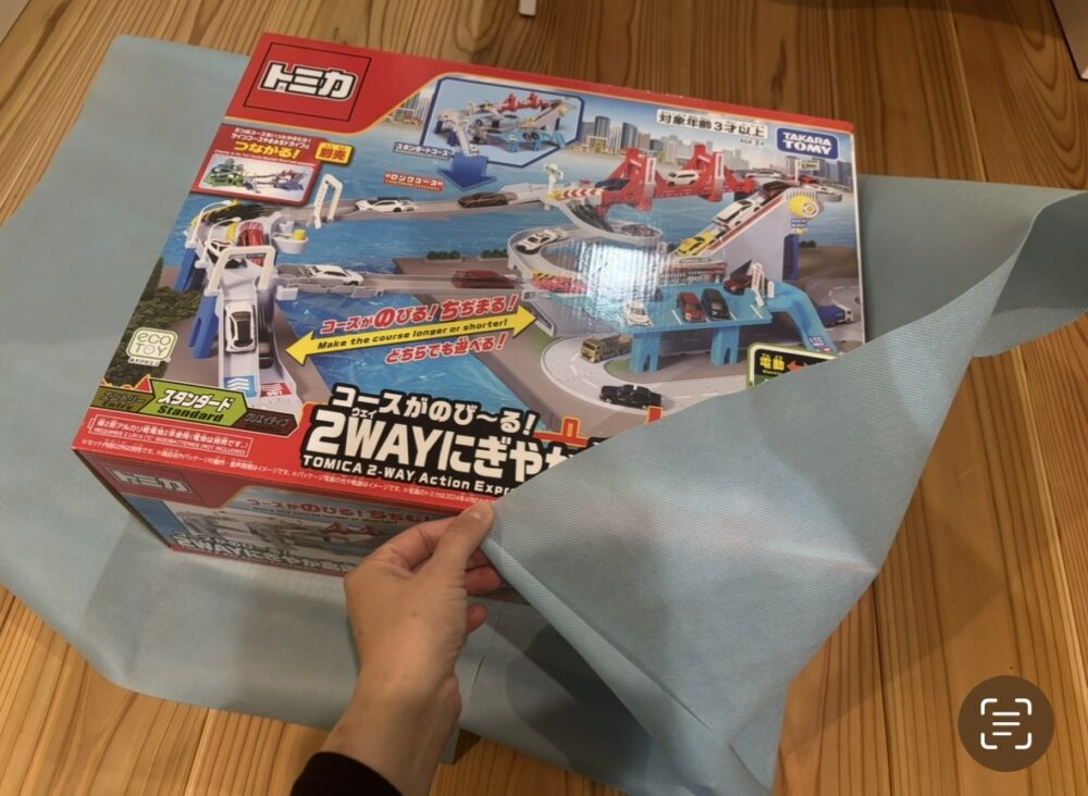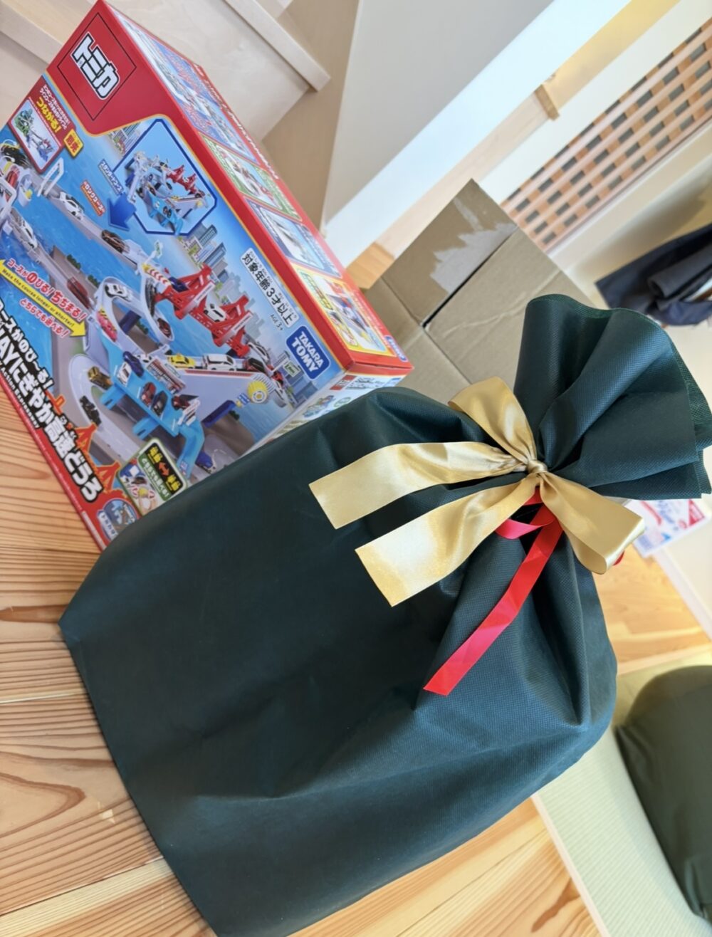 息子のプラレールだけ思ったよりもめっちゃ箱デカくてラッピング袋、入らず...