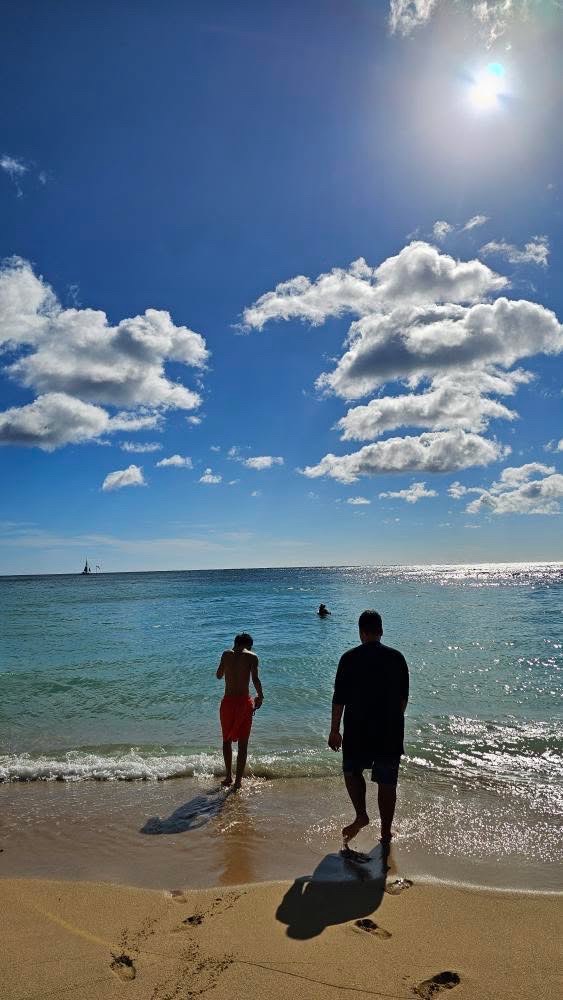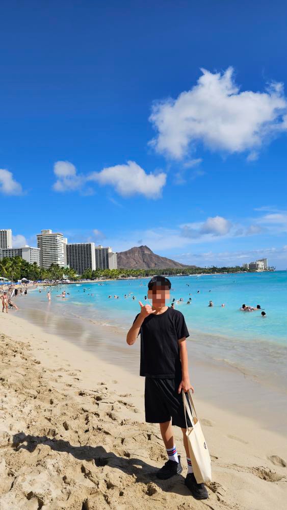 (にしても!ワイキキビーチでアイワのカバン持ってるんアンタだけやで。笑)