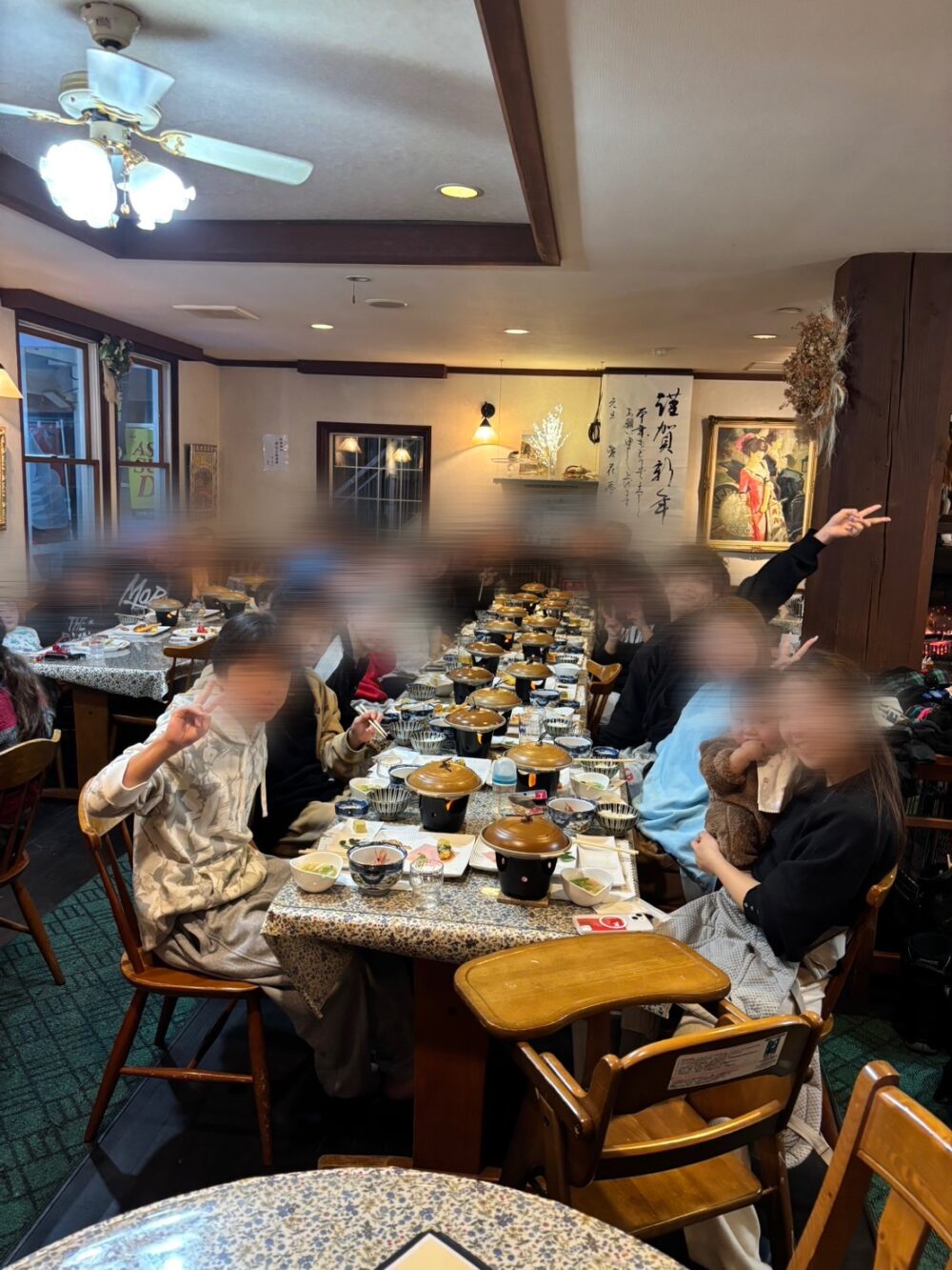 ペンションでのご飯は年々家族が増えて今年はもう一列では並びきれないので2列にと笑