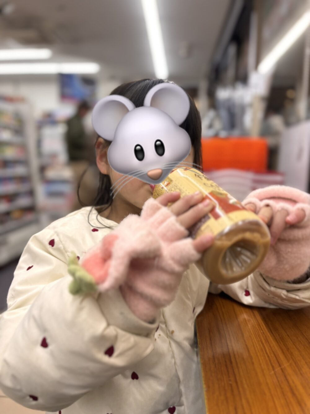 近くのコンビニでホットドリンクを飲みに、寄り道