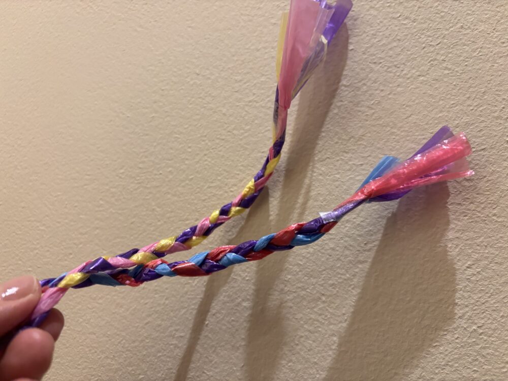 むすめが最近よく幼稚園で作ってくる三つ編み。