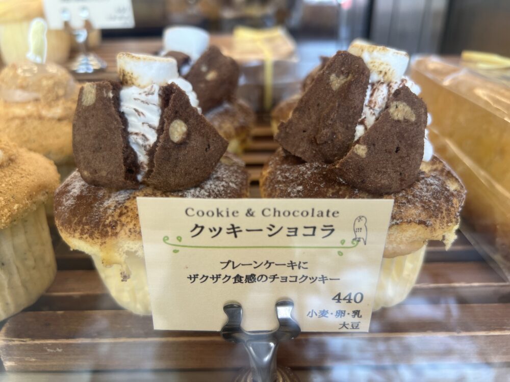 プレーンケーキにチョコクッキーがのった「クッキーショコラ(税込440円)」。