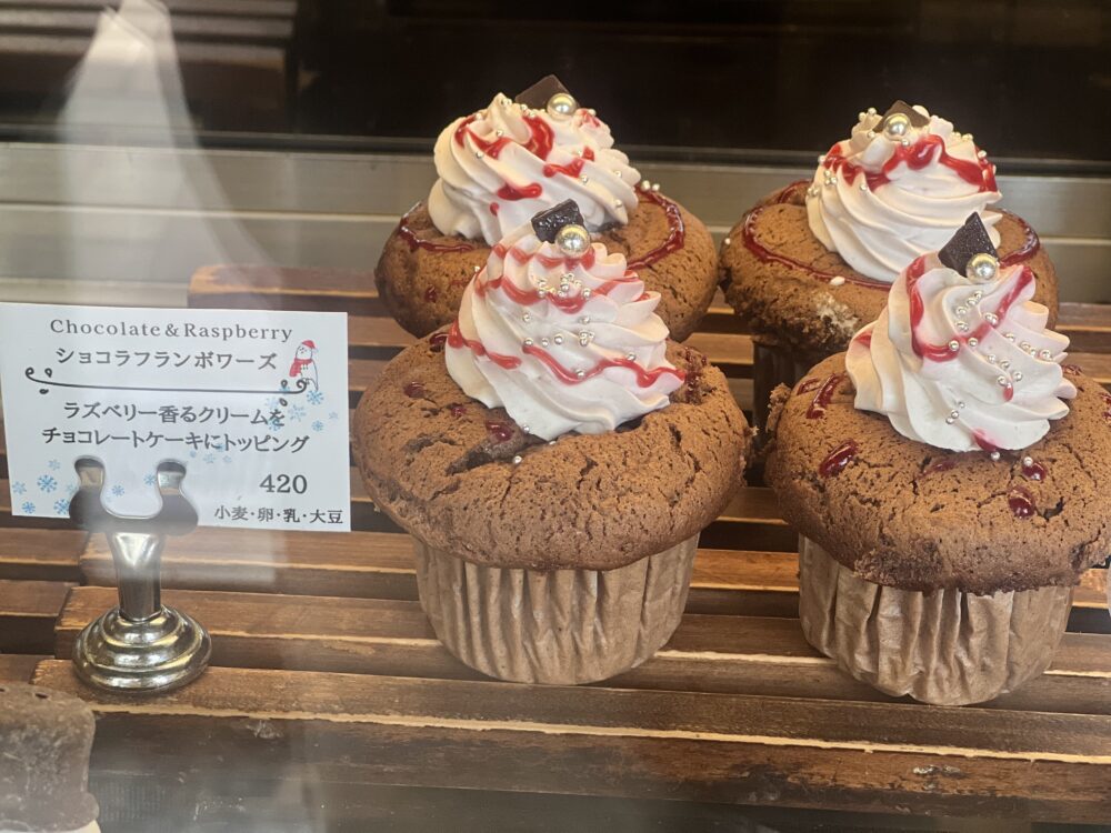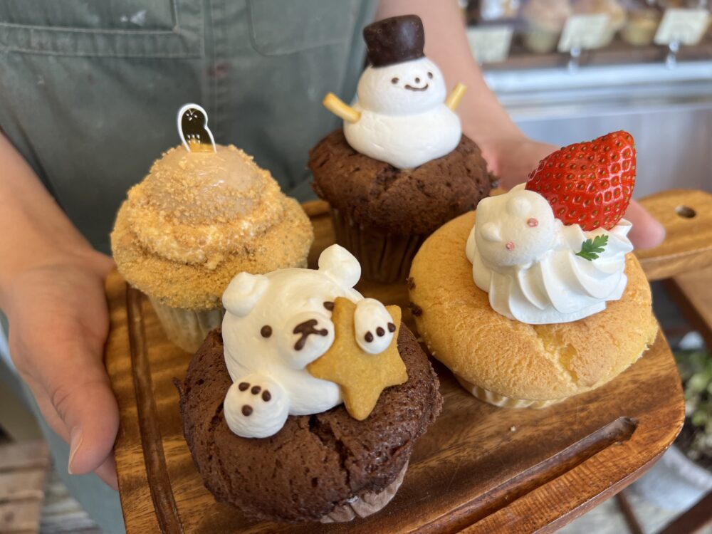 「雪だるま」と「くま」は、チョコレート味のカップケーキに生クリームがのっていました。