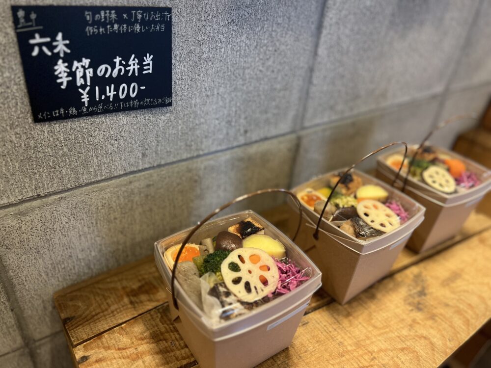 この日は豊中市中桜塚にある「惣菜と菓子の持ち帰り専門店 六禾(りっか)」さんの「季節のお弁当」が販売されていました。(税込1,400円)
