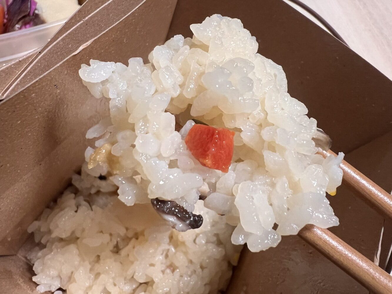 六禾さんのお弁当は二段式になっていて、おかずの下におこわもありました。