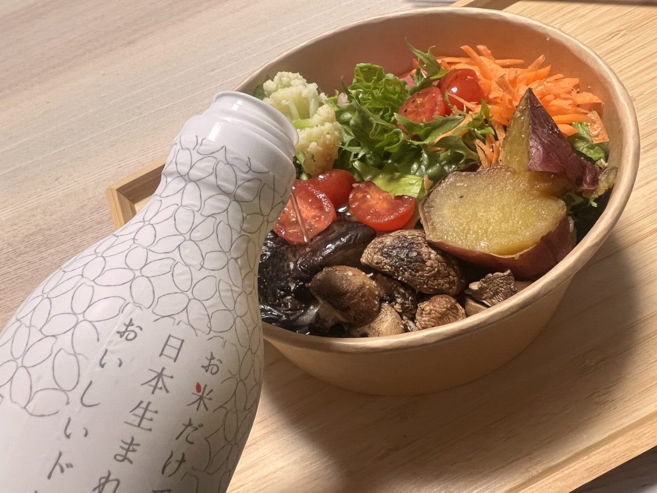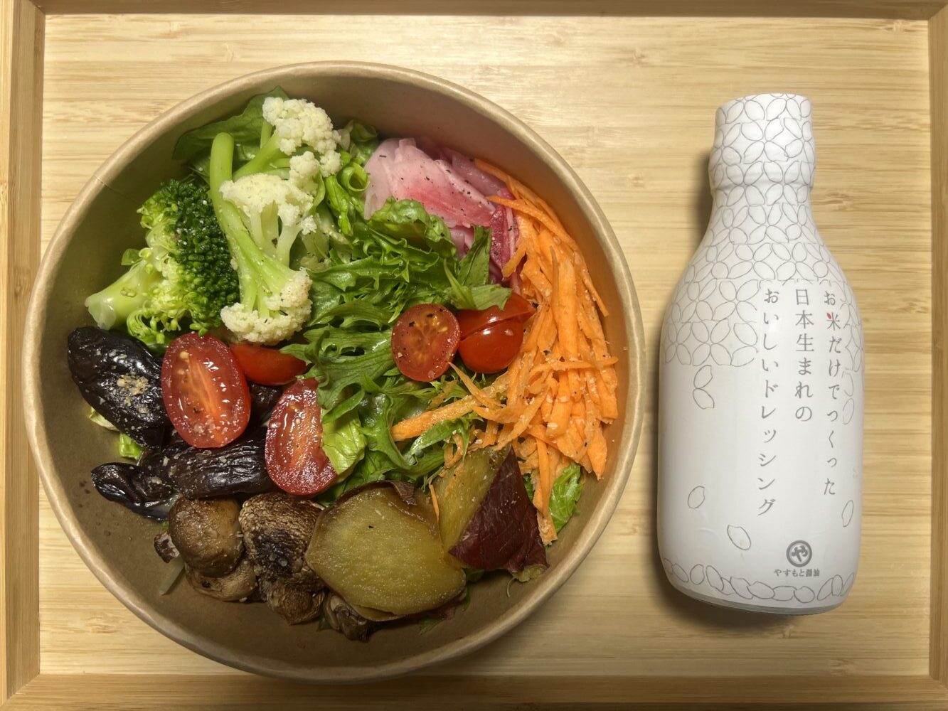 ドレッシングもたくさんあって迷っていたところ、一番右の「お米のドレッシング(税込430円)」をおすすめいただきました。